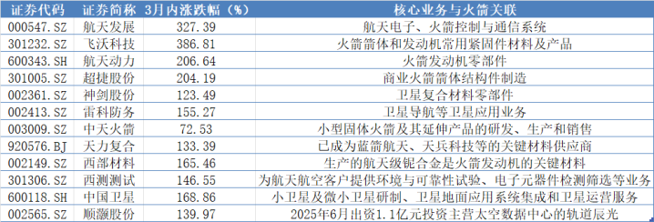 近期,A股商业航天板块火箭制造、发射服务、核心零部件等细分领域多只个股涨幅明显。其中,包括航天发展(000547.SZ)、飞沃科技(301232)、航天动力(600343)、超捷股份(301005.SZ等)涨幅居前个股,主营业务聚焦火箭箭体及发动机零部件、材料,以及火箭控制与通信系统环节。
